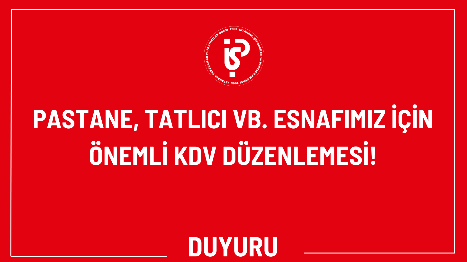 PASTANE, TATLICI VB. ESNAFIMIZ İÇİN ÖNEMLİ KDV DÜZENLEMESİ!